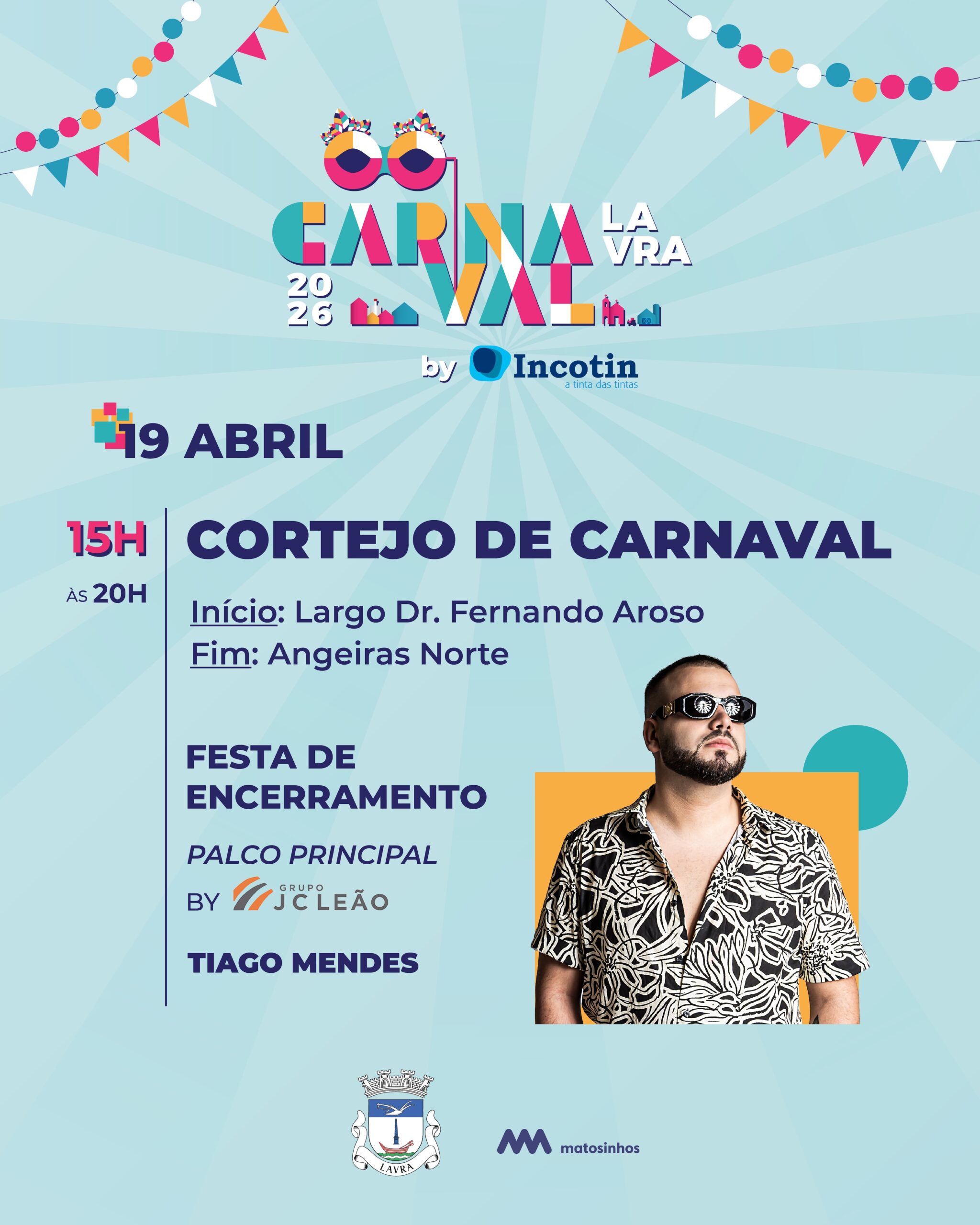 Festa de Encerramento no Palco Principal, com Tiago Mendes, para fechar o Carnaval em grande